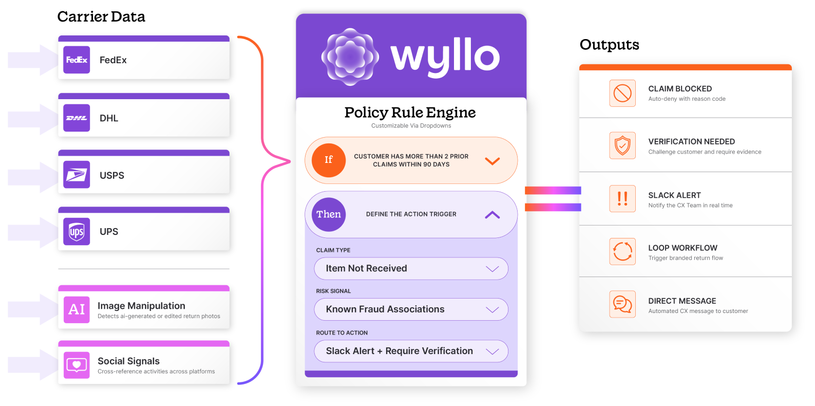Wyllo gives ecommerce teams unified decisioning and end-to-end visibility never before possible. We transform data from your entire customer journey into insights that make trust-based experiences possible — without introducing risk.