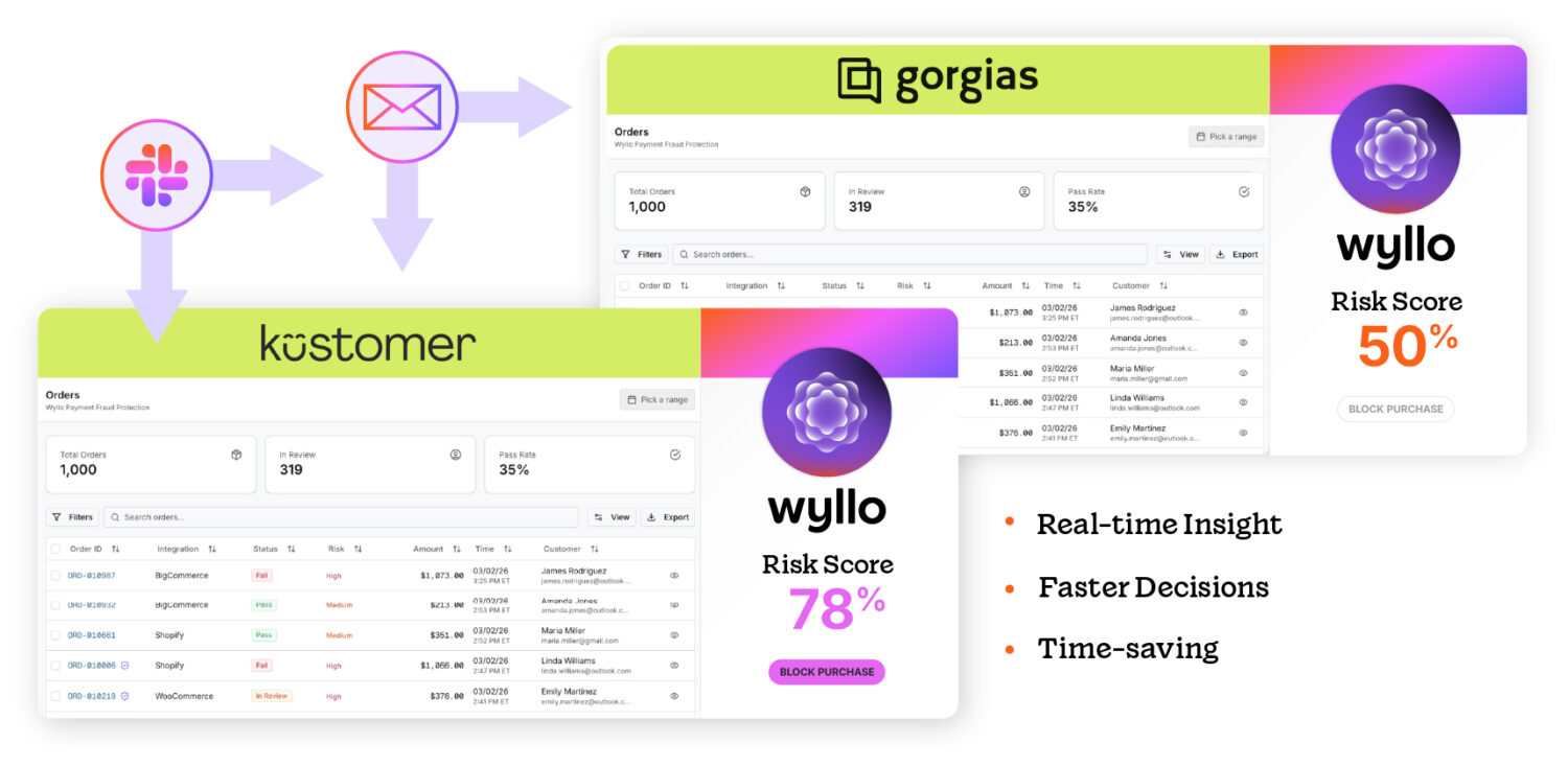 Integrate with leading customer service platforms like Kustomer, Gorgias, and Zendesk, and send notifications to Slack to put information where you need it, when you need it